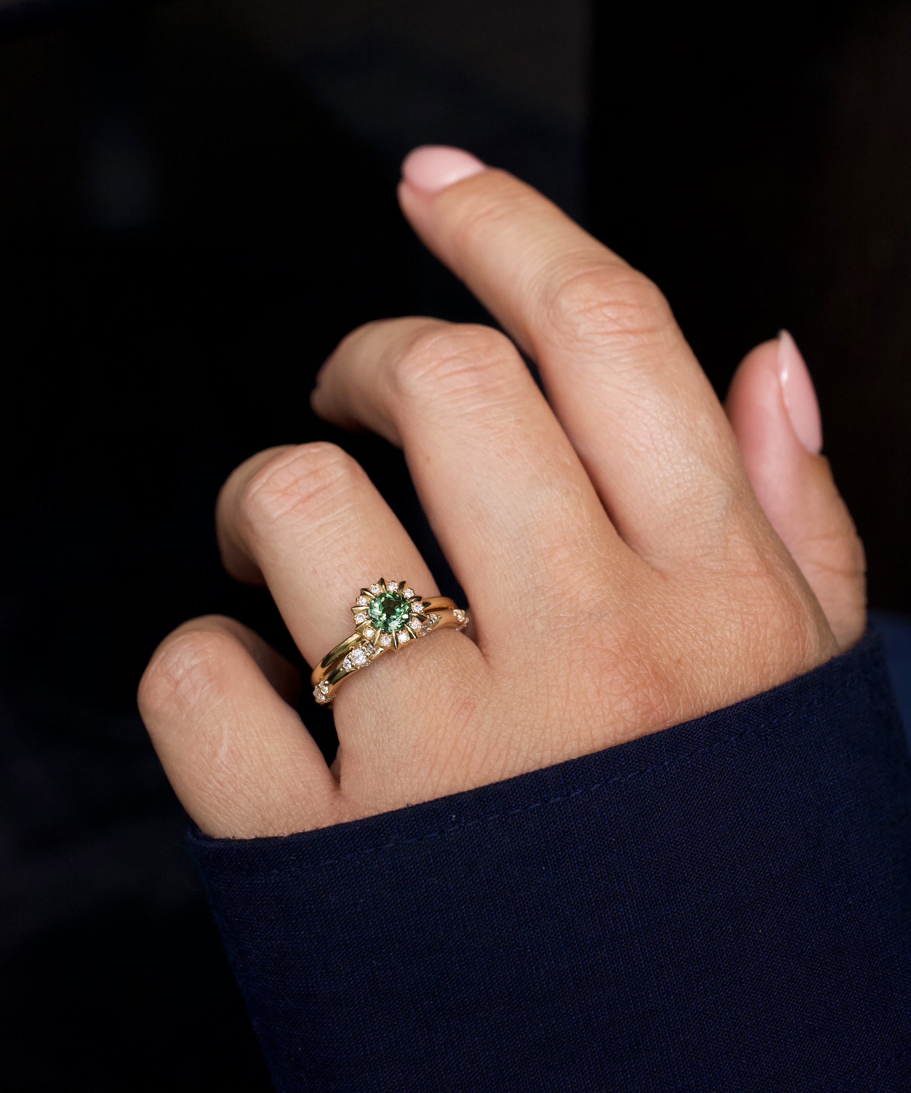 Mini Oval Green Sapphire Promise Ring