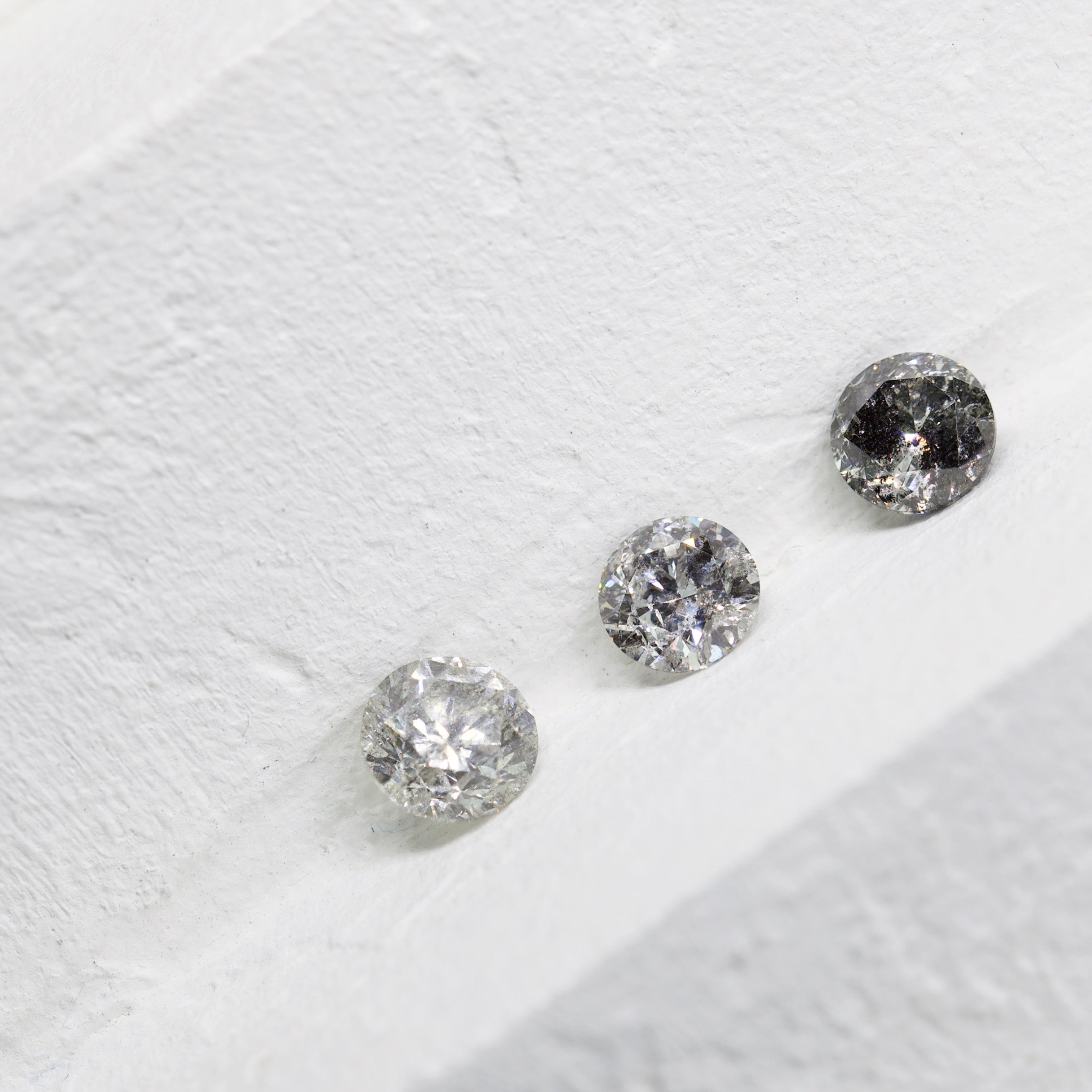 Because grey diamonds are characteristically included by nature, they are not typically sought after for their clarity. Their main charm and unique selling point is the fact that they have inclusions. Some labs may use I1, I2, I3 as terms to denote levels of inclusions in a grey diamond, with I1 being the least included to I3 being much more included, but in general these stones are selected based on how they look and how unique they are from one another.
