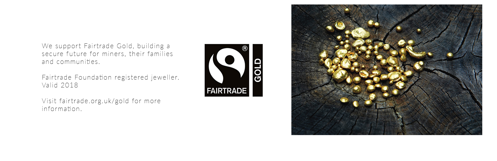 We have been using recycled gold in our jewellery since 2018. Our recycled gold supplier is based in Birmingham. As a registered member of the Fairtrade Goldsmiths scheme we encourage the option to choose fairtrade metals in our pieces.