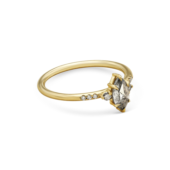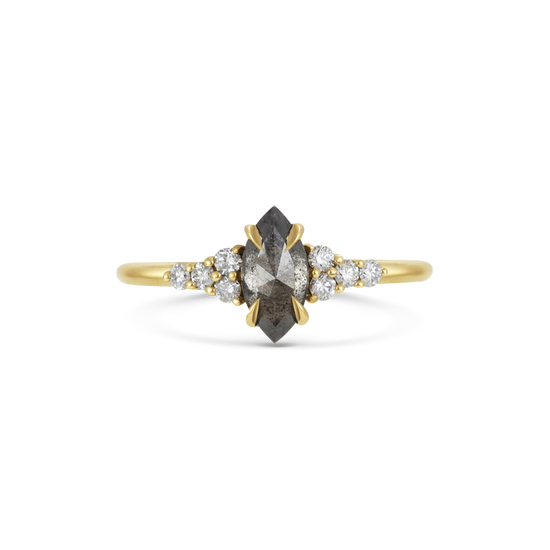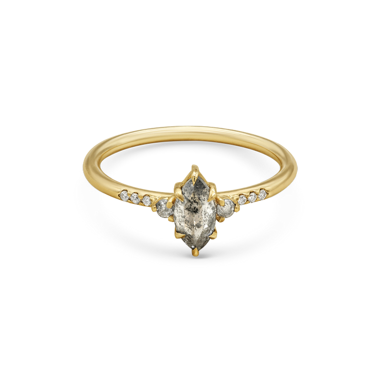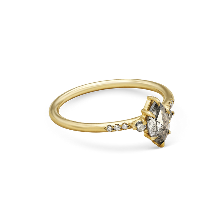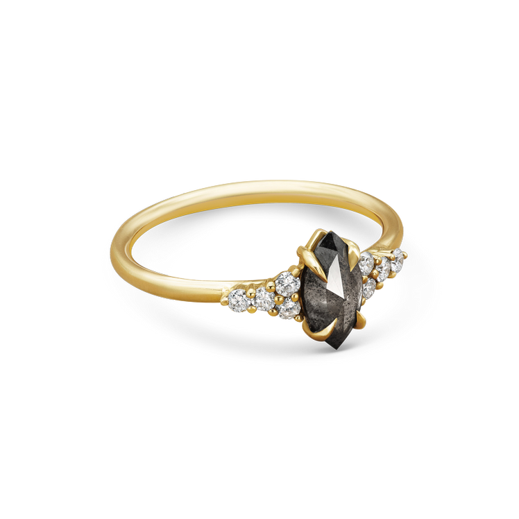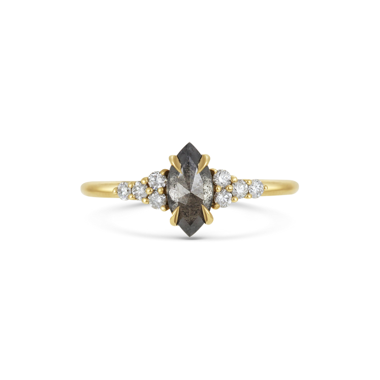 • approx 0.55ct marquise rose cut grey diamond with visible natural inclusions, 7x4mm
