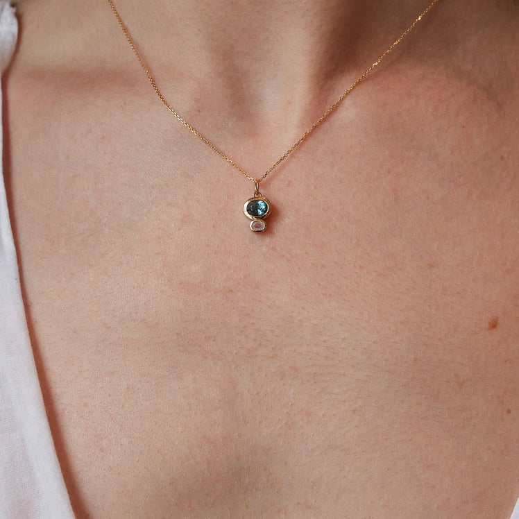 A dreamy combination of blue sapphire and a milky rose cut diamond