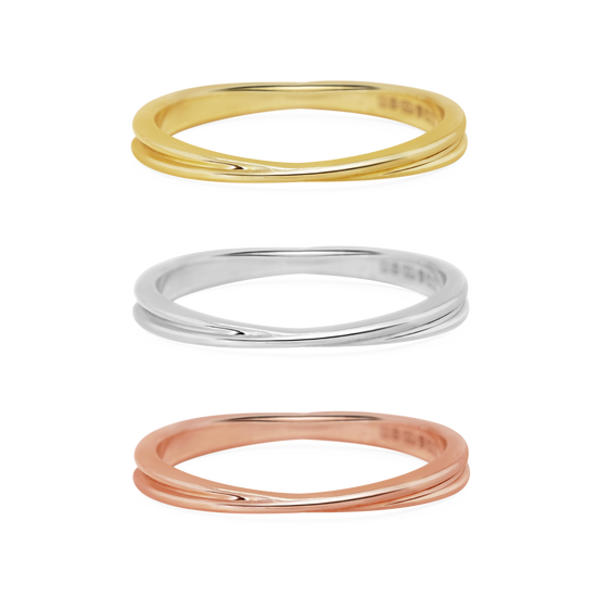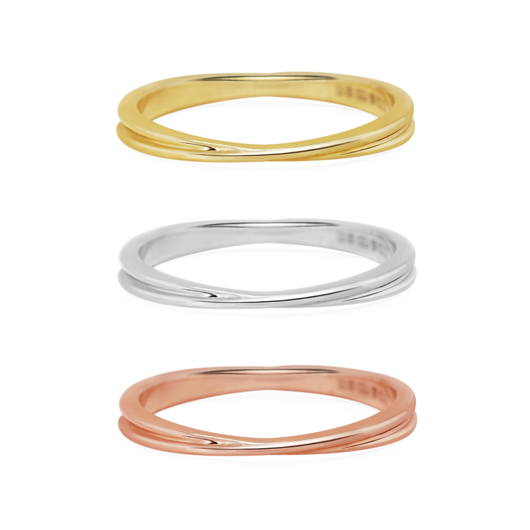Perfect if you want a subtle wedding band that doesn’t feel plain. Features a delicate double-banded look with a crossover design. Ideal for stacking with classic single stone solitaire engagement rings.