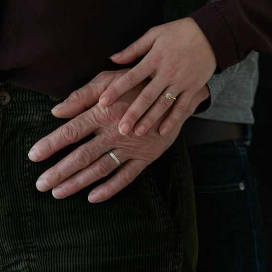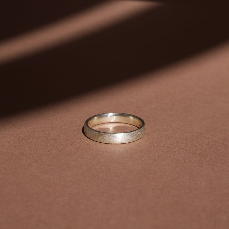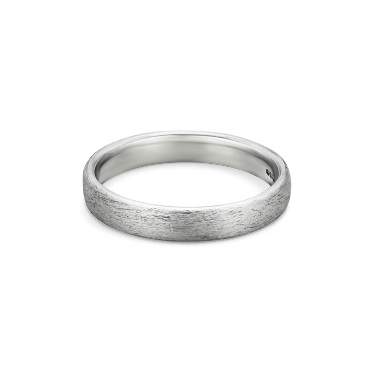 The perfect mix between flat and domed, this comfortable shape sits close to the skin once slipped on and doesn’t stick out too much on the hand. The brushed matte finish gives this otherwise simple ring a distinguished style.