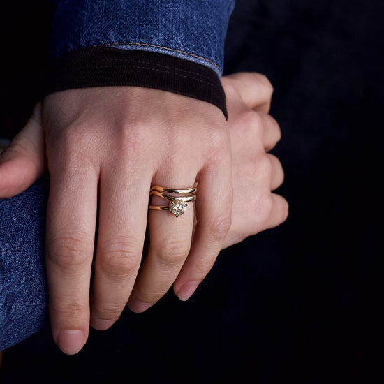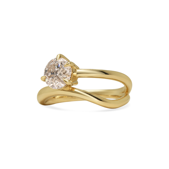 Reimagining the classic diamond solitaire in a flowing and sculptural design. Simple and classic can also be fun. Our Swirl Ring stacks perfectly with our Swirl band for a chunkier look.