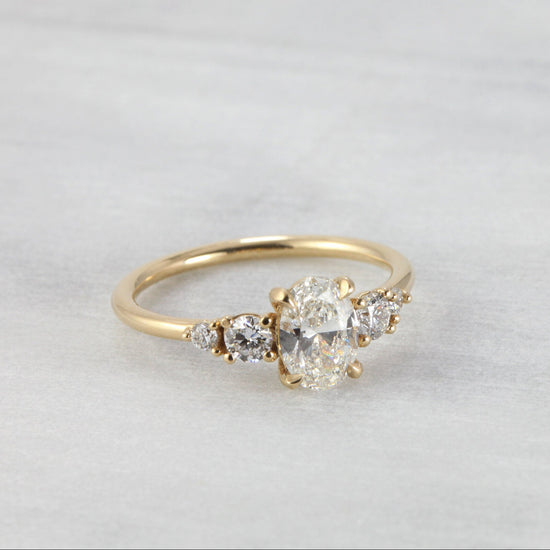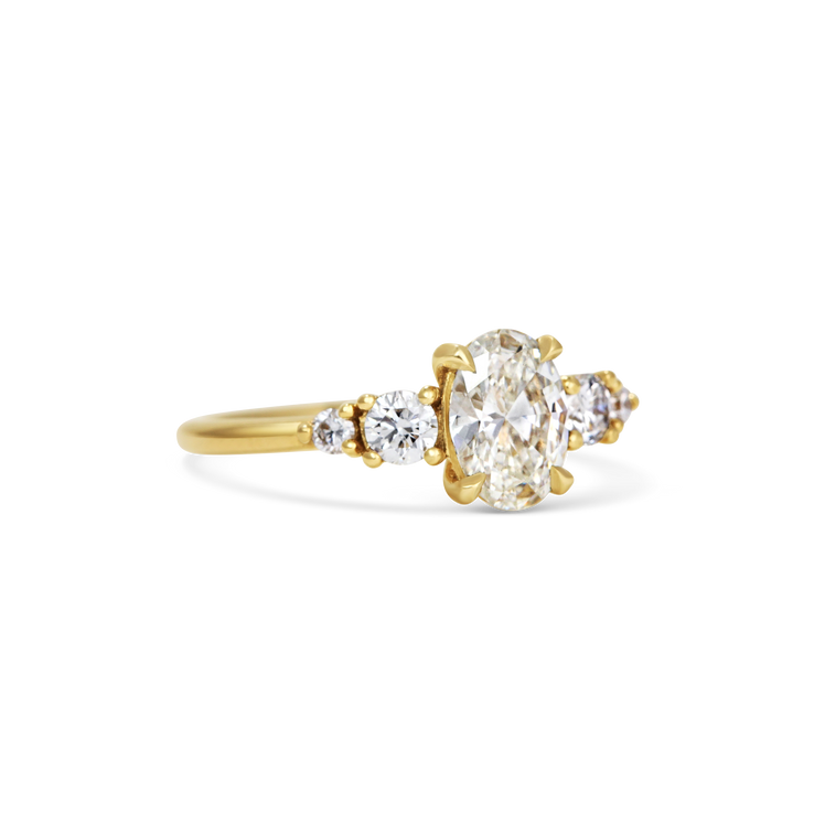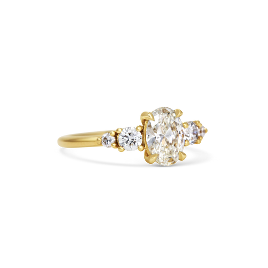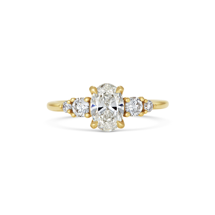 A perennial classic, the 5-stone ring gets a modern update by combining oval and round shapes in a gentle tapering silhouette.