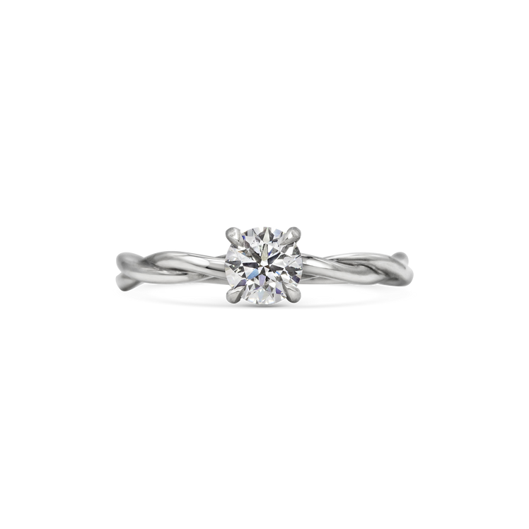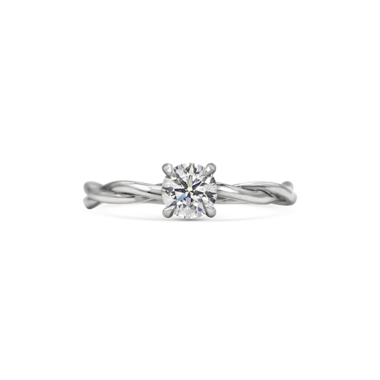 Pictured here in white gold with a 0.5ct GIA certified round brilliant cut diamond, G/VS1.