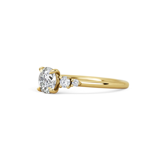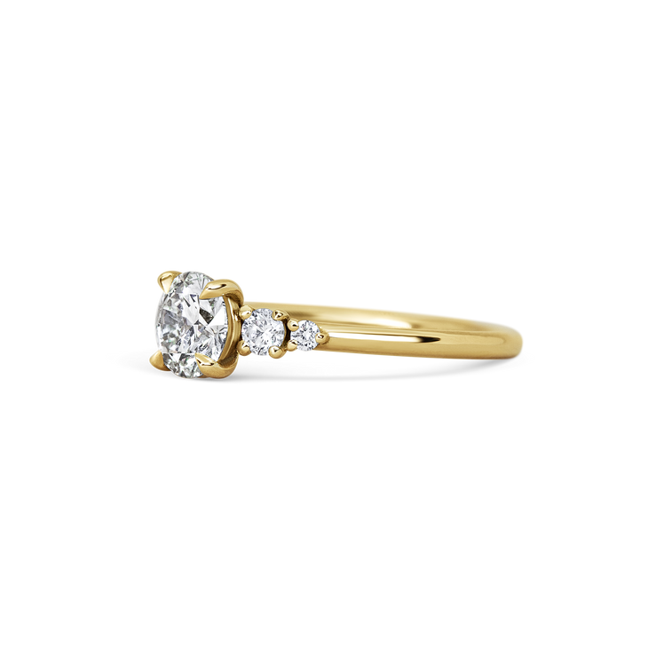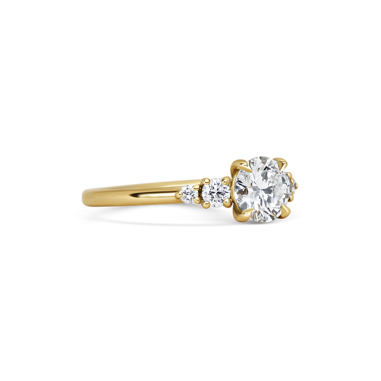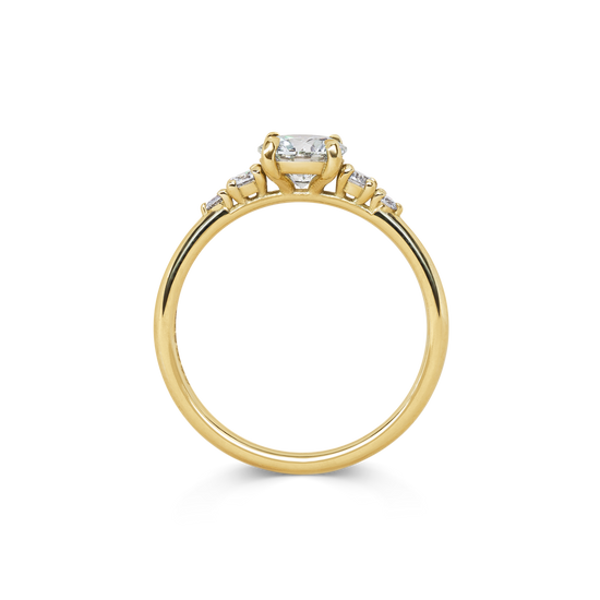 Pictured here in yellow gold with a 0.56ct brilliant cut round diamond, G / VS1