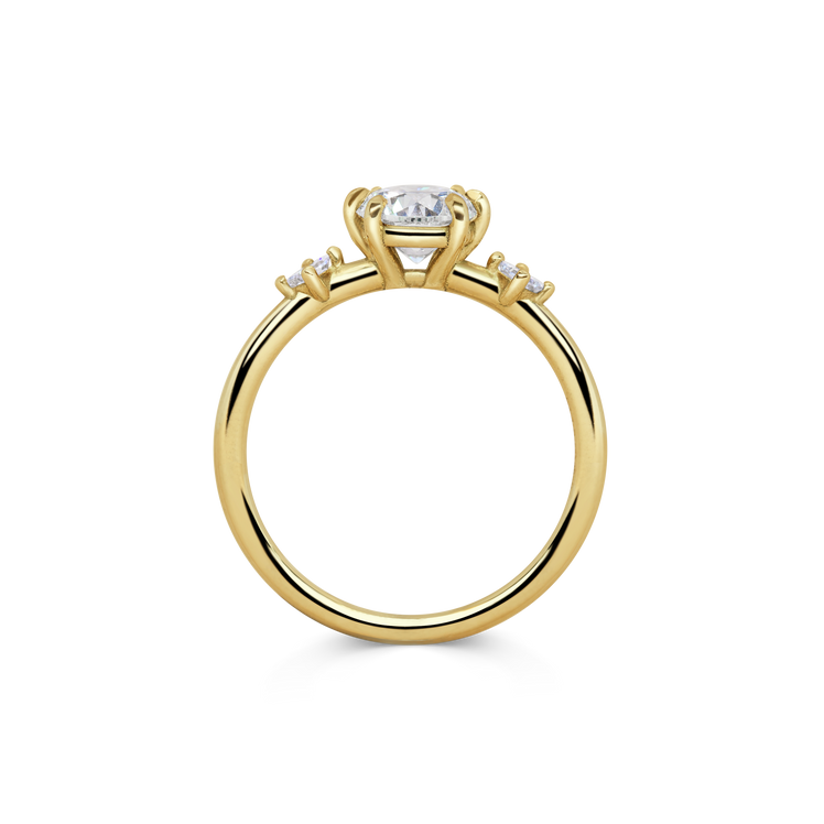 Pictured here in yellow gold with a 0.8ct certified round brilliant cut diamond, G / VS1