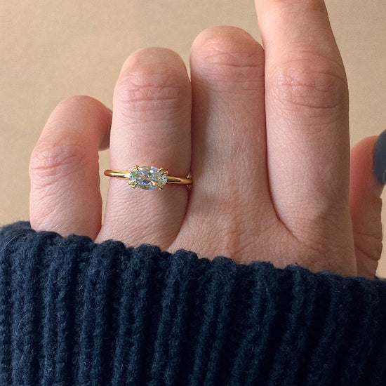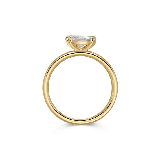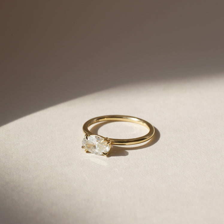 When you want the best of both worlds - a ring that is asymmetrical but balanced; a solitaire that is minimal but with unexpected details.