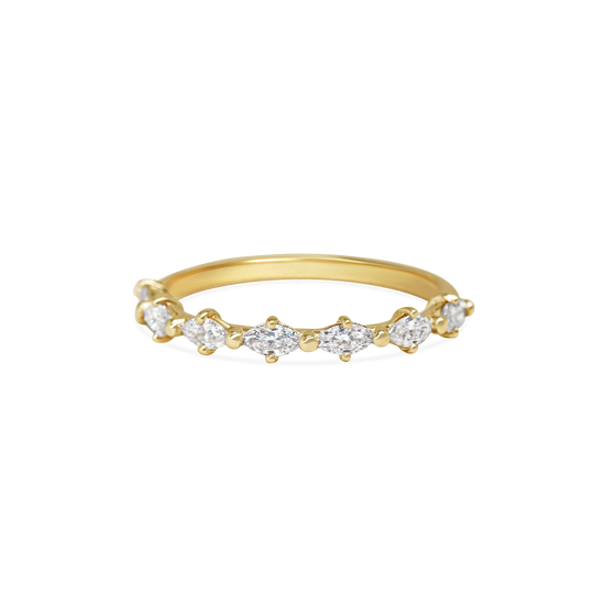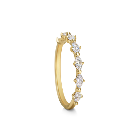 A take on our Lys band, Half Eternity diamond band featuring marquise cut diamonds, set with compass claw settings.