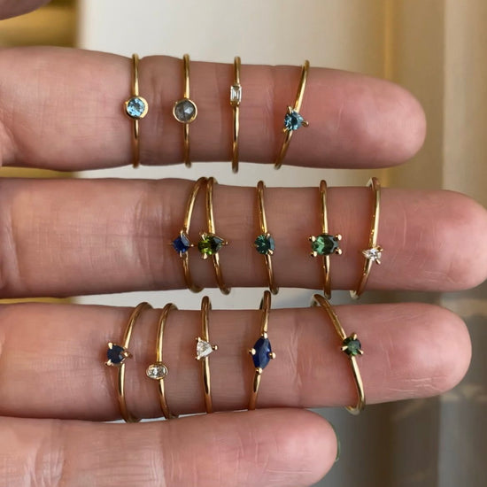 Introducing our delicate range of dainty stacking rings featuring mini precious gemstones in unique cuts and colours. A promise ring could be the perfect placeholder piece if you plan to propose with a view to commission something bespoke together later on.