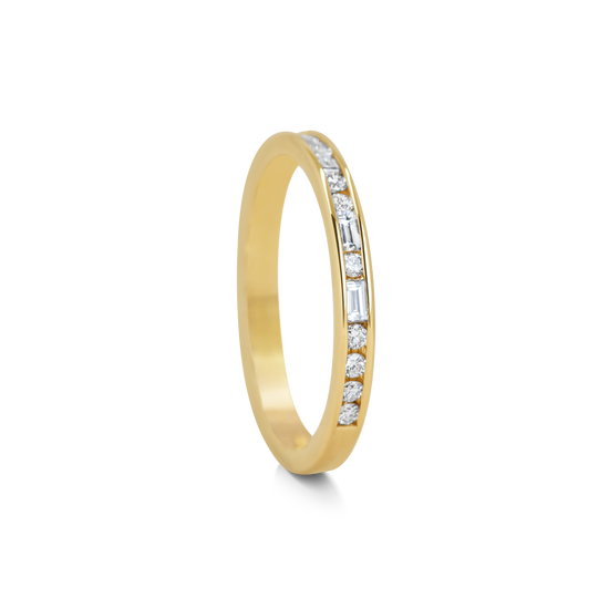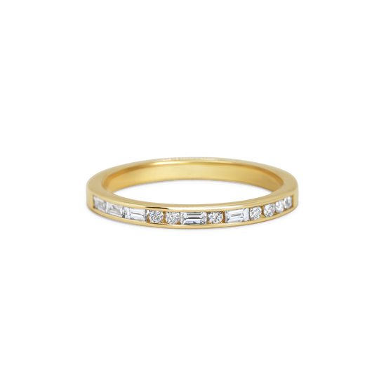 Elegantly arranged round cut and baguette cut diamonds that convey secret meanings, known only to the wearer. Ideal for anniversaries, weddings, or meaningful moments.
