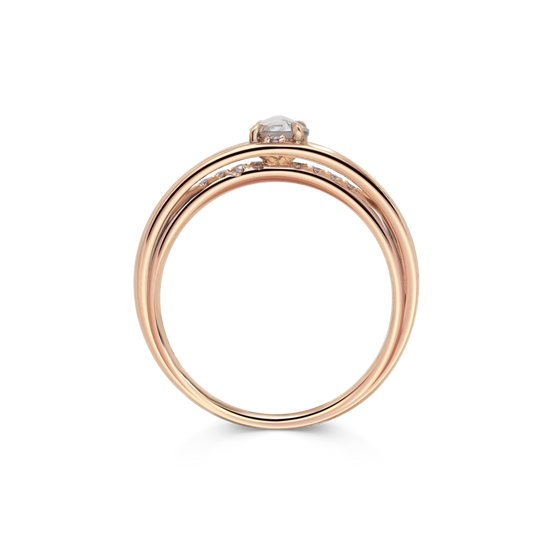 Ring 014 features a round rose cut grey diamond set on a split shank band with pave diamonds.