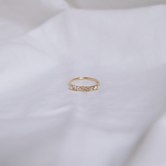 Ring 017 features a mix of rose cut unique shaped diamonds. Claw set on a fine band.